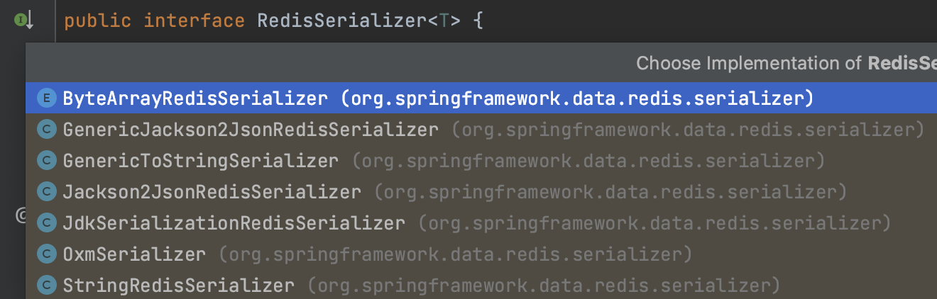 레디스의 데이터 저장 형식은 byte array 형태이며, 사용하는 쪽에서 포맷을 지정하여 저장 및 조회할 수 있다. Spring Data Redis는 자주 쓰는 포맷을 편리하게 사용할 수 있도록 미리 Serializer 클래스를 정의해뒀다.