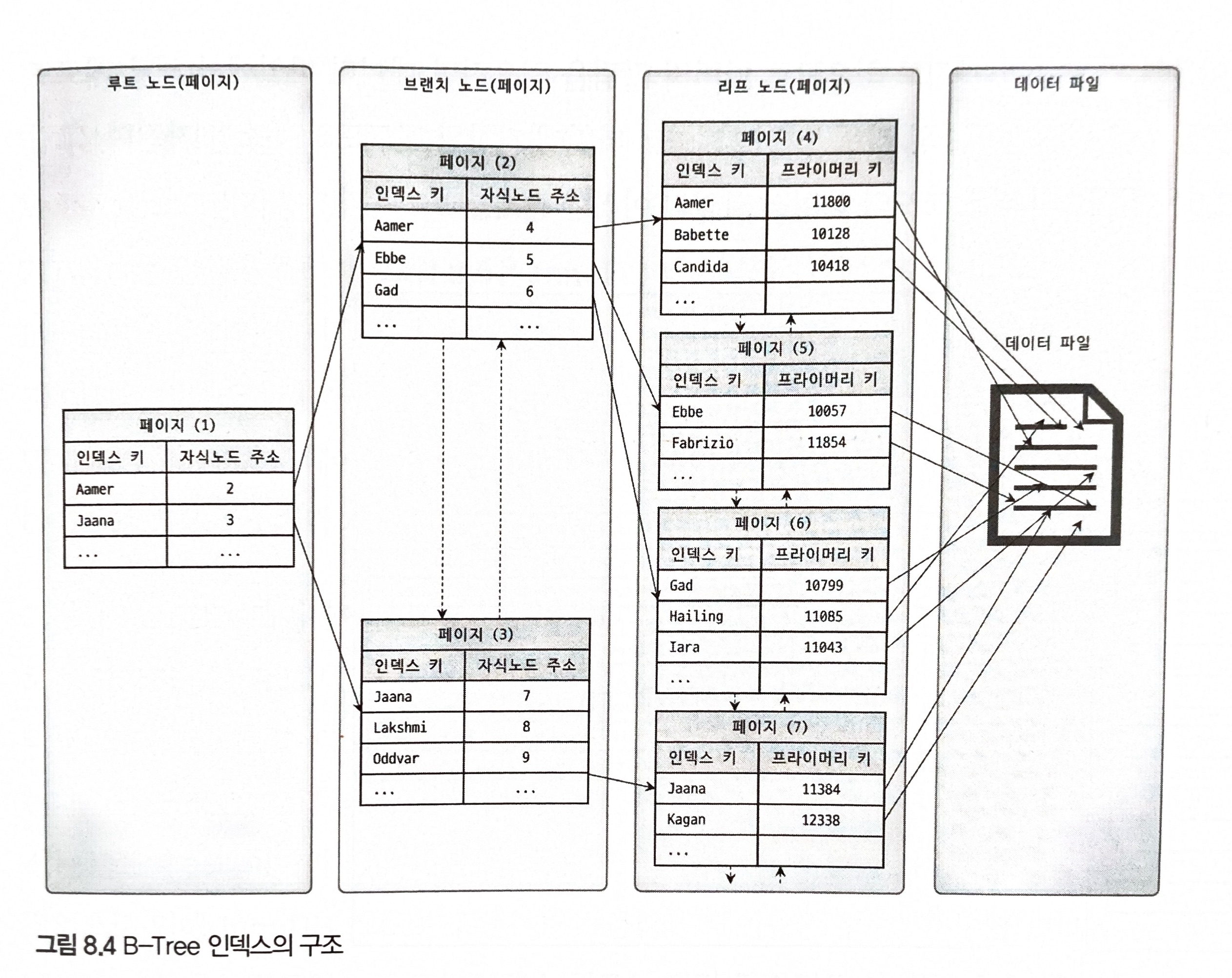 - 인덱스 키 값은 모두 정렬되어 있지만, 데이터 파일의 레코드는 정렬되어 있지 않다.