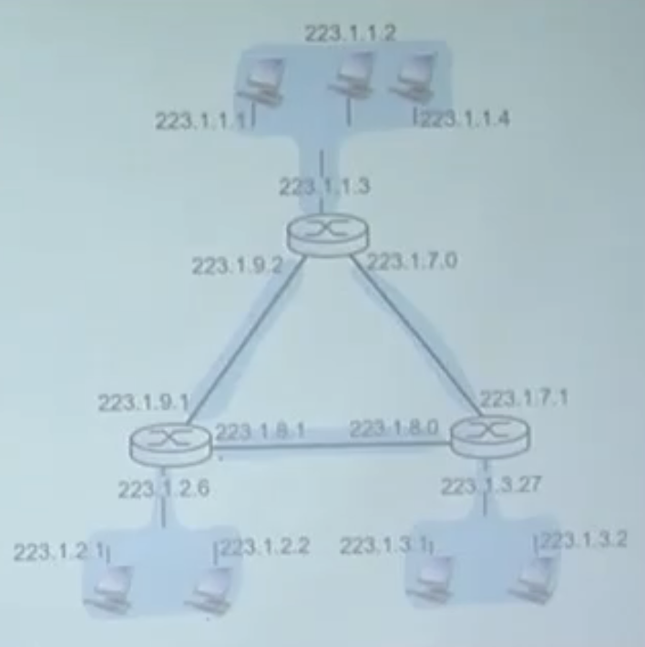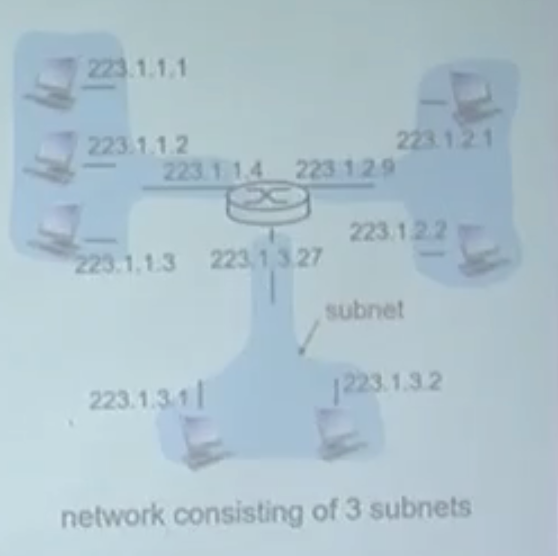 그리고 위 사진을 보면 알 수 있겠지만, 하나의 라우터는 여러 개의 인터페이스를 가지며 여러 개의 IP 주소를 갖는다. 그리고 이때 여러 개의 IP 주소는 모두 다른 prefix를 갖는다. 즉, 보통의 디바이스는 하나의 서브넷에 속하지만, 라우터는 특별하게 여러 개의 서브넷에 속할 수 있다.