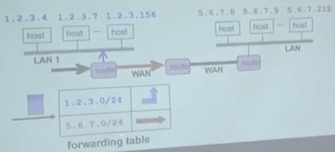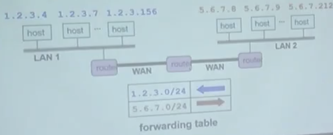 따라서 같은 네트워크를 쓰는 IP 주소들은 모두 같은 네트워크 주소를 갖는다. 또한 IP 주소의 계층화를 통해 포워딩 테이블이 단순해지고 관리가 쉬워지며, 매칭도 빨라진다.