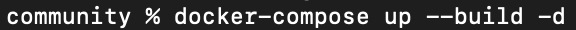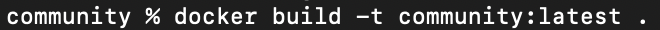 나는 다음을 통해 이미지를 빌드했다. 그러면 도커가 현재 디렉토리(community)에 위치한 도커 파일을 읽어서 이미지를 생성한다. 그리고 이때 도커 파일의 이름은 반드시 Dockerfile이어야 한다.