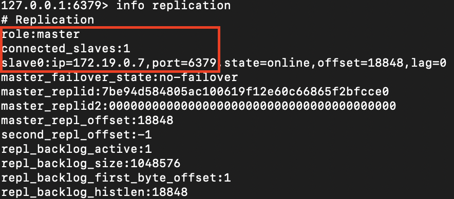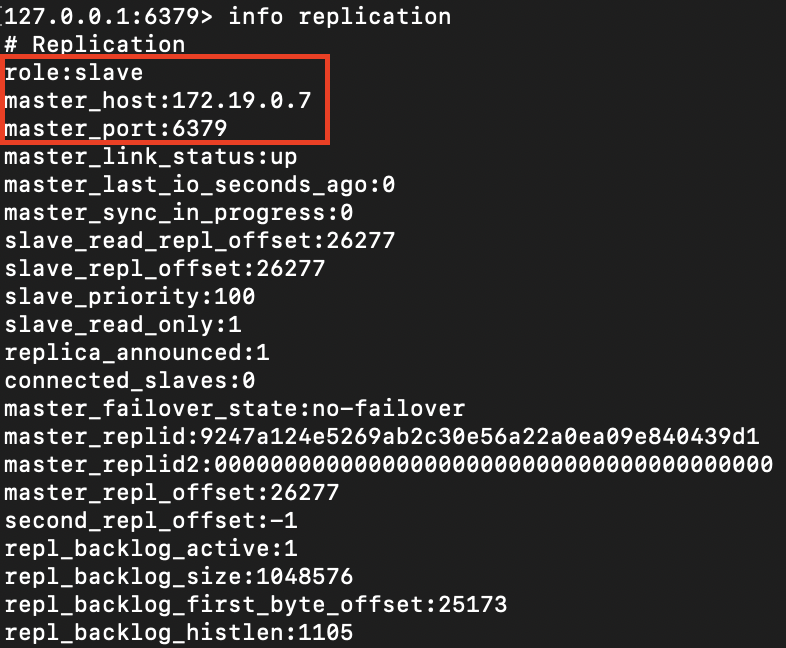 - 6379: 자신이 마스터이며, 172.19.0.7:6379가 자신의 슬레이브이다.