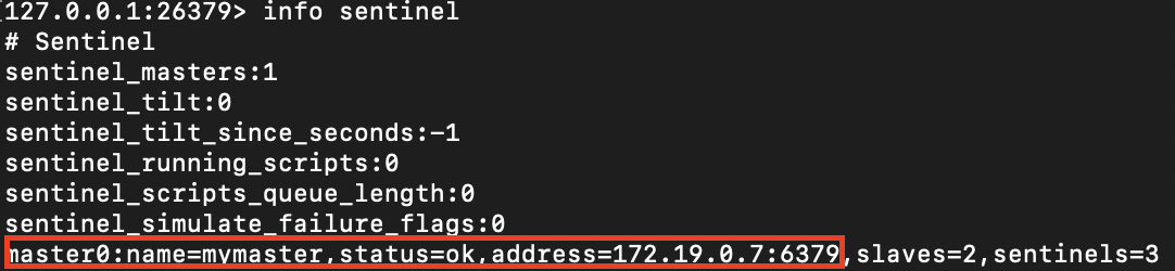- 센티널: 마스터인 172.19.0.5:6379를 감시하고 있다.