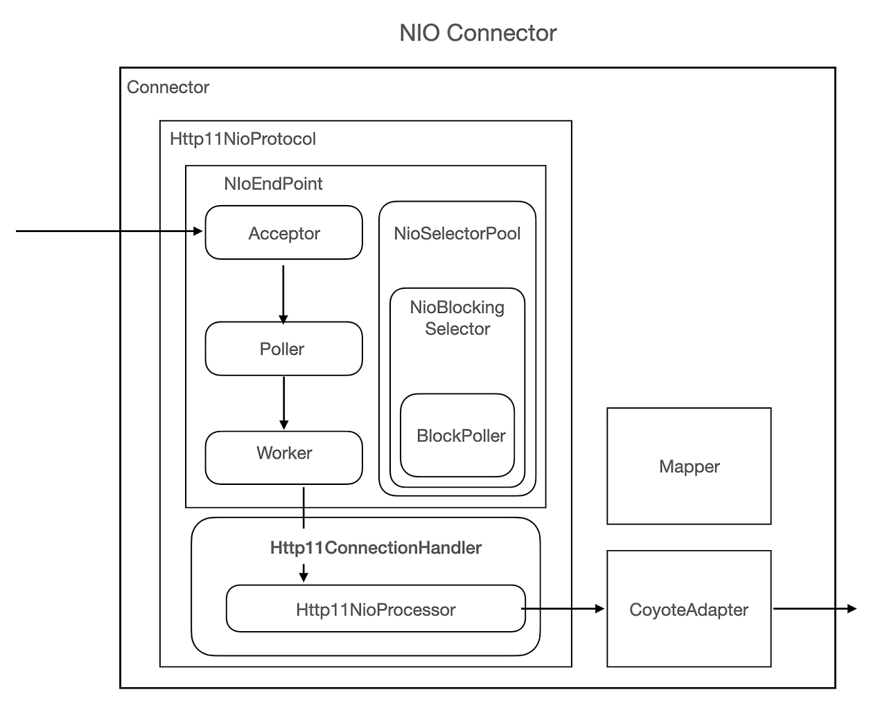 - https://velog.io/@jihoson94/BIO-NIO-Connector-in-Tomcat#connector%EB%93%A4%EC%9D%98-%EA%B3%B5%ED%86%B5%EC%A0%81%EC%9D%B8-%EC%97%AD%ED%95%A0