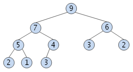 - 힙은 우선순위 큐의 구현 방식 중 하나로 주로 이진 트리 기반으로 구현된다. (이진 트리: 자녀가 최대 두 개인 트리)