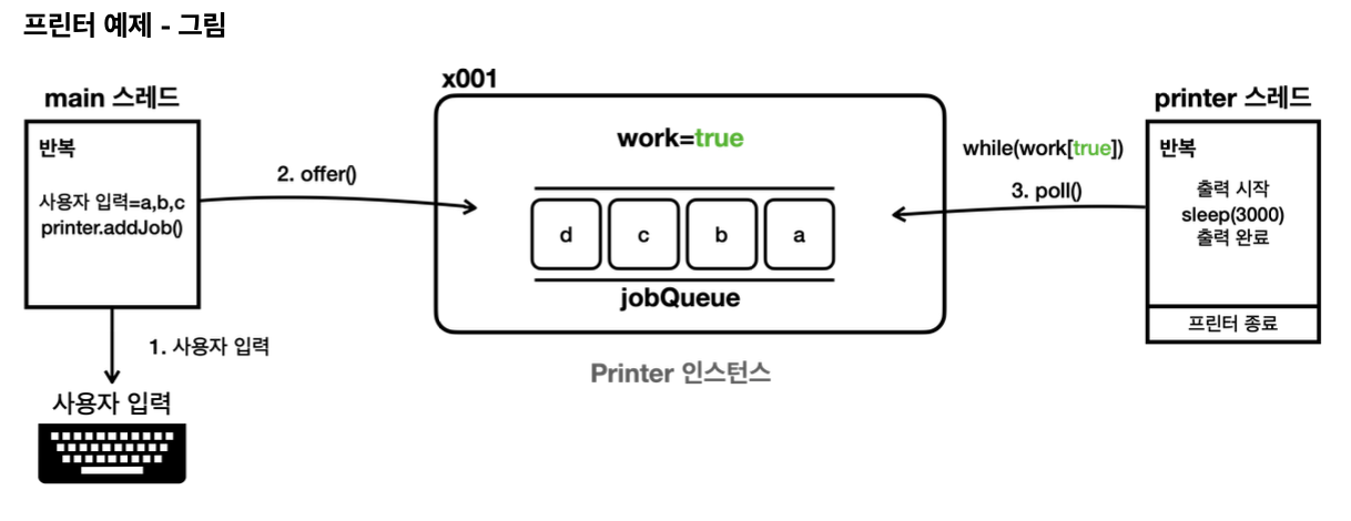 private final Queue<String> que = new ArrayDeque<>(); // 생산자와 소비자의 공유 자원