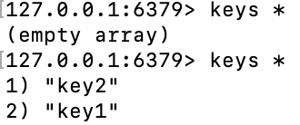 127.0.0.1:6379> KEYS * # 에러가 발생하지 않는 커맨드는 정상적으로 수행됨