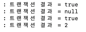 이번에는 key2가 없는 상태에서 get("key2")를 호출했다. 이 경우 null이 반환되는데 오류가 발생해도 롤백되지 않으며, 정상적으로 수행될 수 있는 커맨드들은 정상 수행되었다. 따라서 결과적으로 key1, key2가 모두 저장되었다.