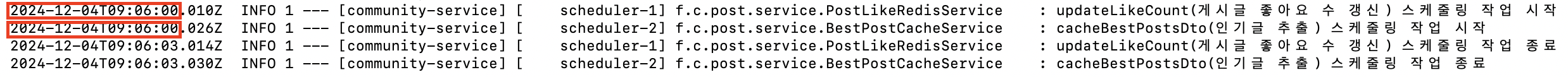 log.info("cacheBestPostsDto(인기글 추출) 스케줄링 작업 시작");