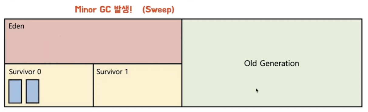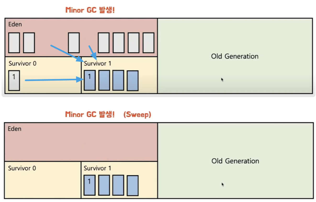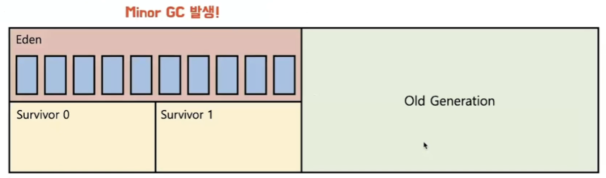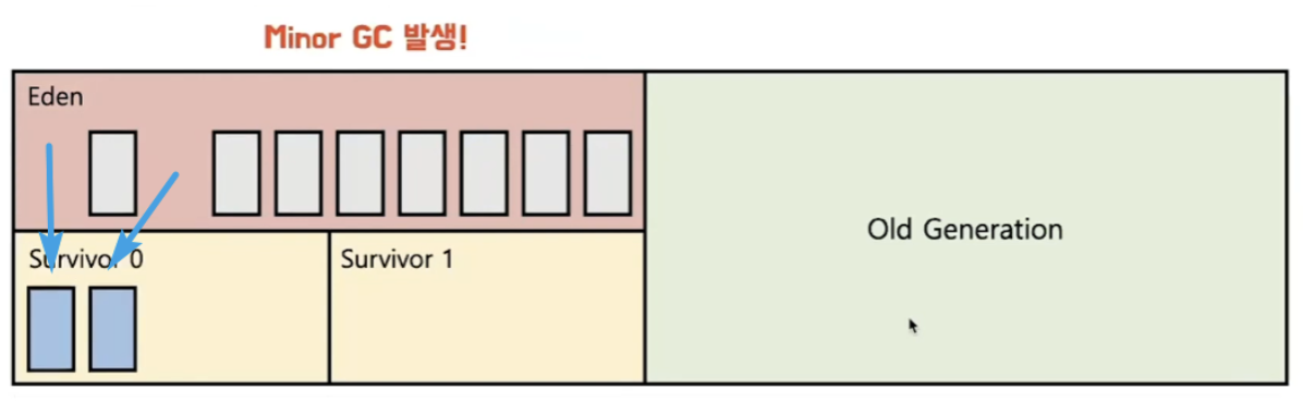 - 이 때문에 Young 영역에서 발생되는 가비지 컬렉션을 Minor GC라고 한다.