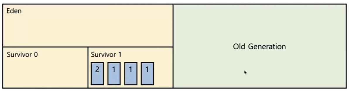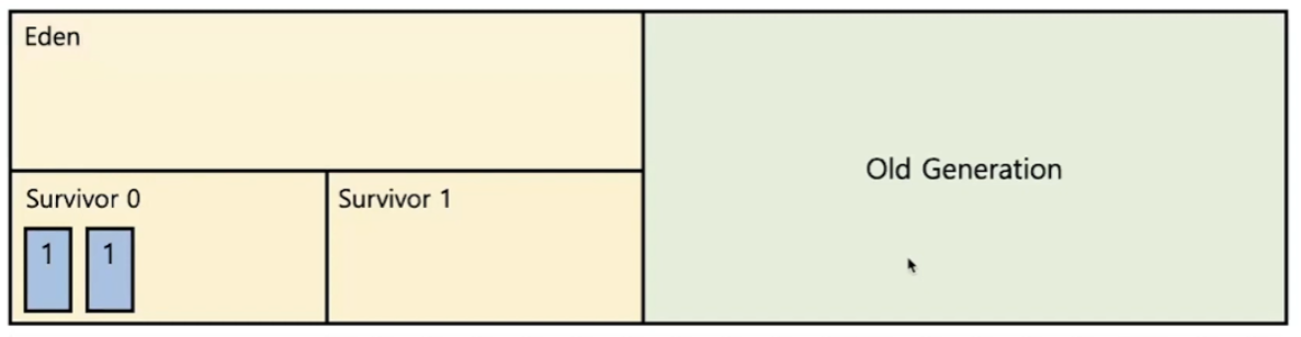 Eden 영역에서 살아남은 객체는 Survivor 영역으로 이동한다.