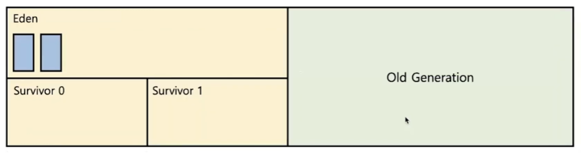 - Young 영역보다 더 큰 메모리 공간이 할당된다. 그 이유는 Young 영역의 객체들은 빈번하게 가비지 컬렉션이 발생하여 메모리가 해제되기 때문에 큰 공간을 필요로 하지 않는다. 반면 Old 영역의 객체들은 수명이 더 길어 객체들이 쌓이게 되기 때문이다.