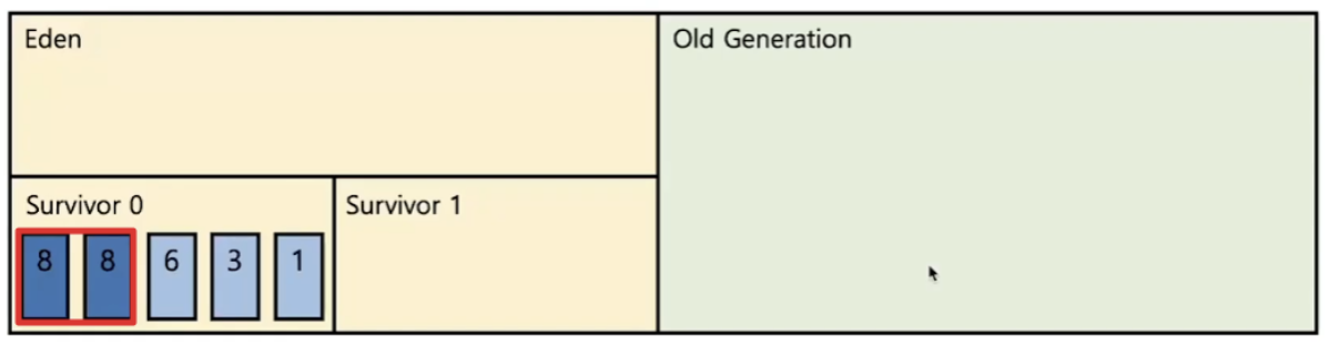 다시 살아남은 객체들은 age 값을 각각 1씩 증가시키고, 이러한 과정이 반복된다.