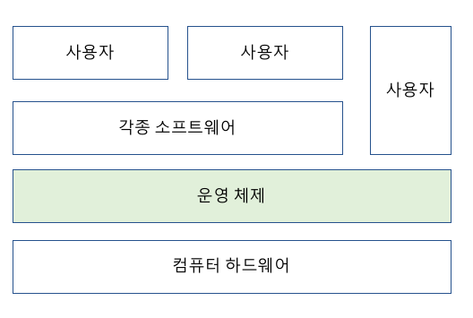 운영체제(Operating System)란 컴퓨터 하드웨어 바로 윗단에 설치되는 소프트웨어를 말한다.