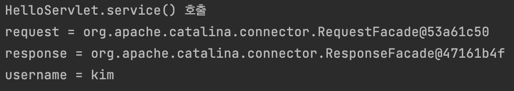 http://localhost:8080/hello?username=kim 호출 결과는 다음과 같다.
