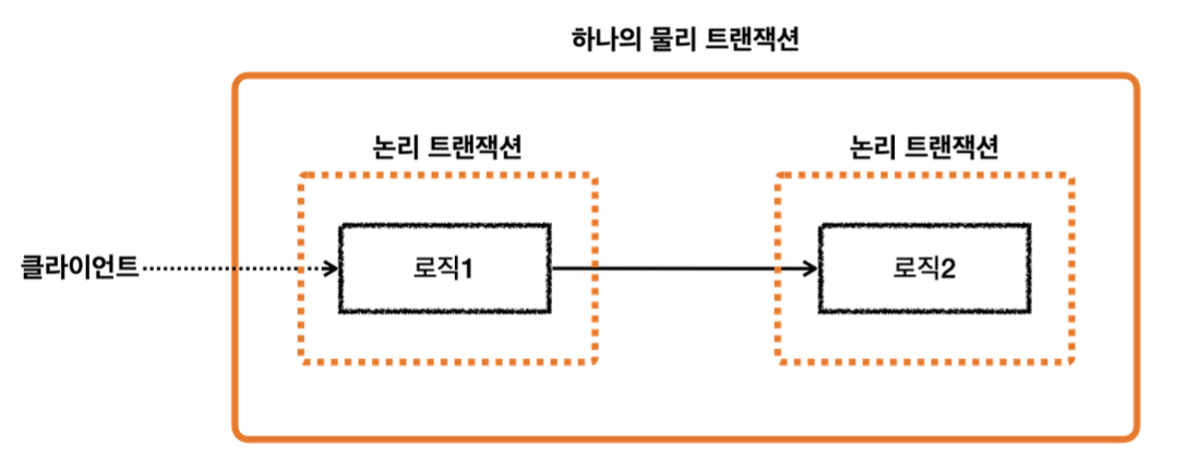 - 논리 트랜잭션은 트랜잭션 매니저를 통해서 트랜잭션을 사용하는 단위로, 실제 데이터베이스에 반영되지 않는다.